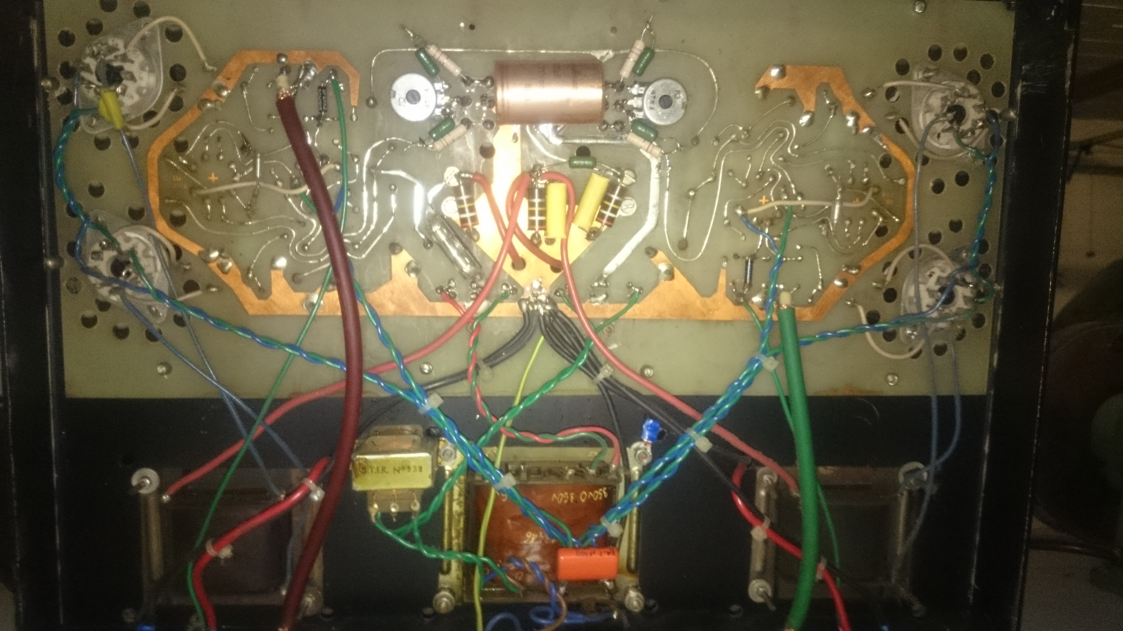 A noter aussi, vu d'ici, une différence entre les paires de tubes de puissance qui ressemble d'un côté à des el34 et de l'autre à des 6550. Un peu étrange. L'historique de l'appareil serait peut être utile. C'est certainement un kit de l'epoque ou, il me semble, Cochet vendait ses appareils montés ou en kit.