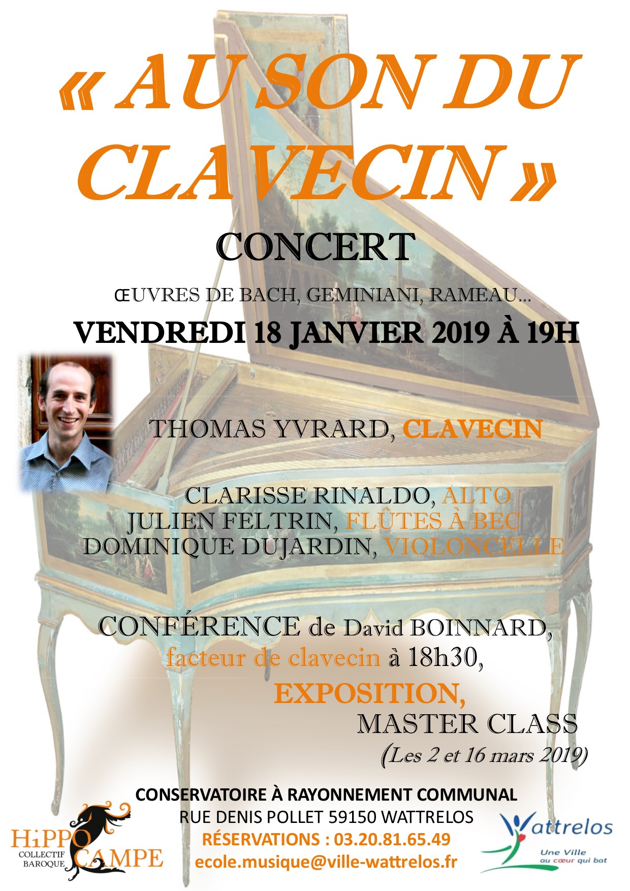 Vendredi prochain le 18 janvier à 18h30, Il y aura un concert centré autour du son du clavecin au Conservatoire de Wattrelos.
