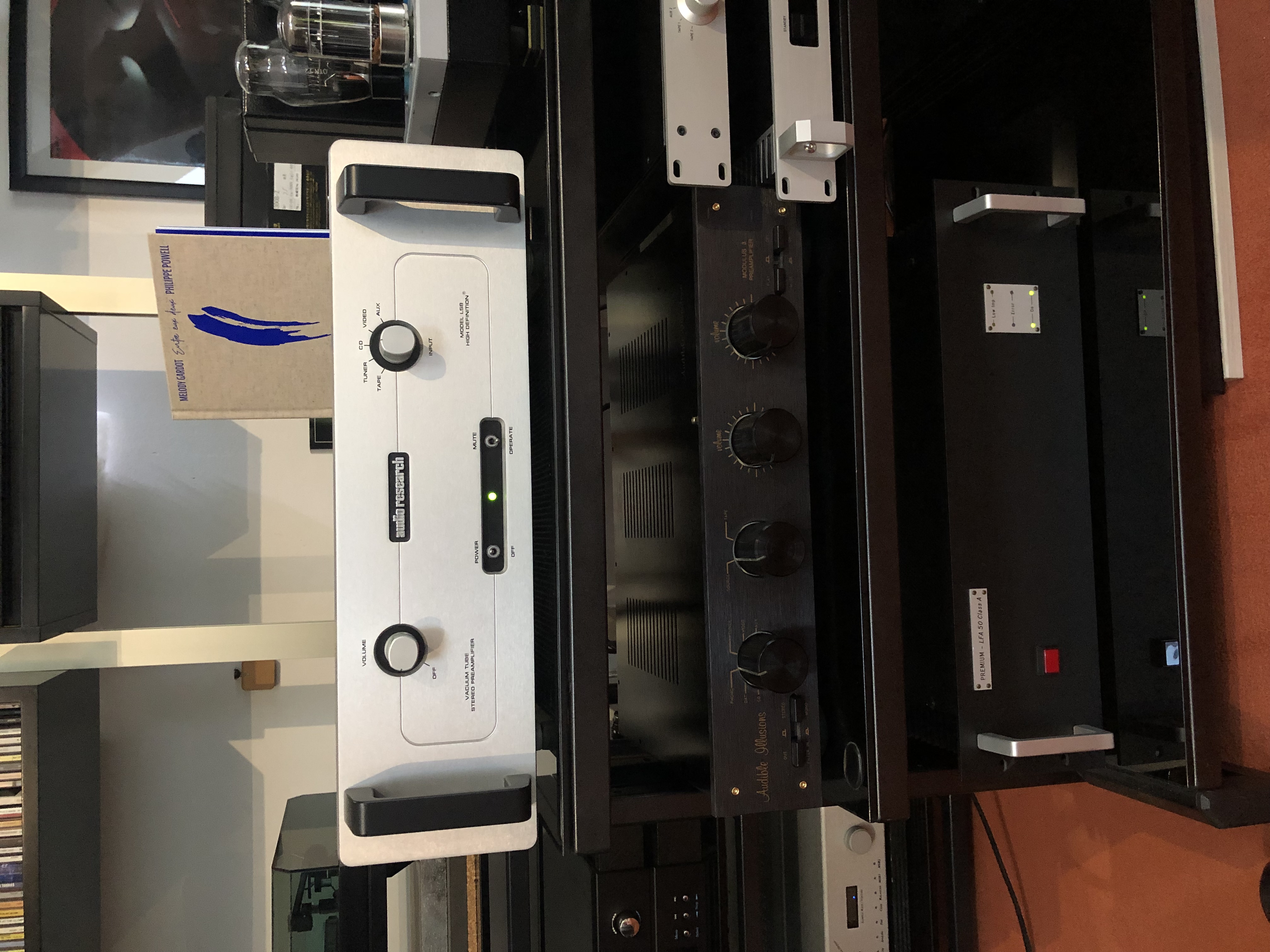 Après les écoute assez concluantes de ce samedi avec lecteur/drive Denon pro + Dac Hegel hd12 précédant un preampli Audio Research sp7 avec l’habituel et excellent LFA 50, on a pu démontrer à la fois l’apport réel d’un pré ampli dans un système et le talent de la marque pour les préamplificateurs.